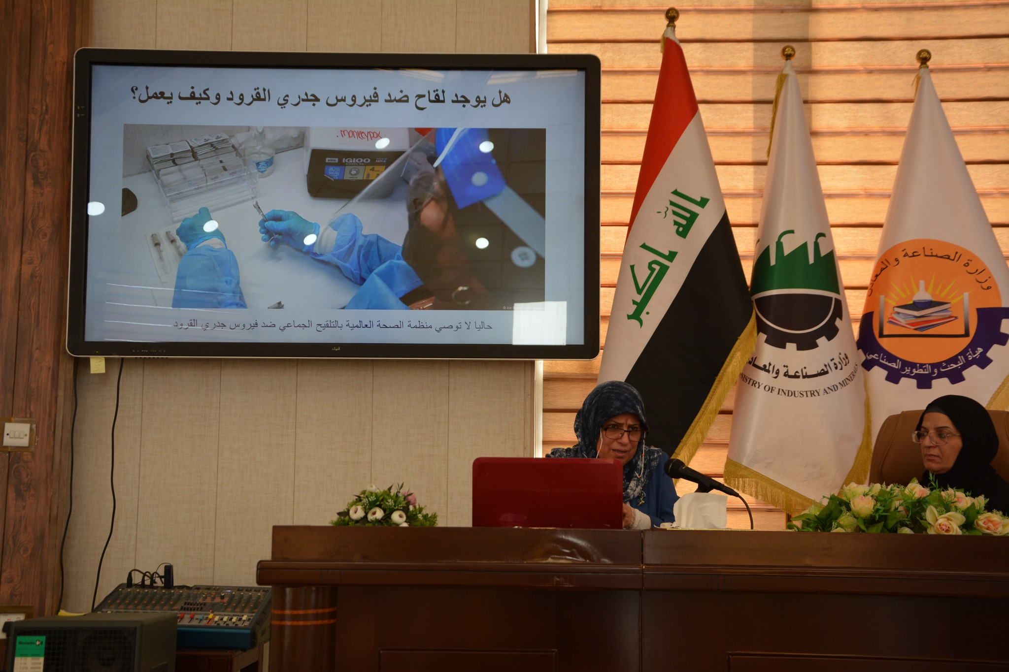 برعاية مدير عام هيأة البحث والتطوير الصناعي/ وكالة المهندس عبد الرزاق داود نظم قسم الاعلام والعلاقات العامة بالتعاون مع مركز الرازي للبحوث وانتاج العدد التشخيصية ومركز بحوث وانتاج الادوية البيطرية محاضرة توعوية حول فايروس جدري القرود القاها كل من الدكتورة الهام عبد الهادي والدكتورة البيطرية ضمياء فاضل استعرضا خلال المحاضرة خطورة الفايروس وطرق الوقاية والعلاج حيث بين المحاضرون ان جدري القرود هو مرض فايروسي نادر ينتقل من الحيوانات إلى البشر. تم اكتشافه لأول مرة في القردة عام 1958، وظهرت أول حالة بشرية مسجلة في جمهورية الكونغو الديمقراطية عام 1970. يتميز جدري القرود بظهور طفح جلدي يشبه الجدري، بالإضافة إلى أعراض أخرى مثل الحمى، وآلام العضلات، والصداع.في الفترة الأخيرة، تم الإبلاغ عن حالات متعددة لجدري القرود في عدة دول خارج إفريقيا، وهو ما أثار قلق السلطات الصحية العالمية. انتقال الفيروس يتم عادة من خلال الاتصال المباشر مع دماء أو سوائل الجسم أو الجلد المصاب للحيوانات أو الأشخاص المصابين. ومع ذلك، فإن انتقال الفيروس بين البشر يعتبر نادراً وان منظمة الصحة العالمية، تتابع الوضع عن كثب وتحث على توخي الحذر، خاصة عند السفر إلى المناطق التي تم الإبلاغ فيها عن حالات الإصابة. وتعمل أيضًا على زيادة التوعية حول كيفية الوقاية من المرض والحد من انتشاره، بما في ذلك تجنب الاتصال الوثيق مع الحيوانات المصابة واستخدام معدات الحماية الشخصية عند التعامل مع المرضى المصابين.